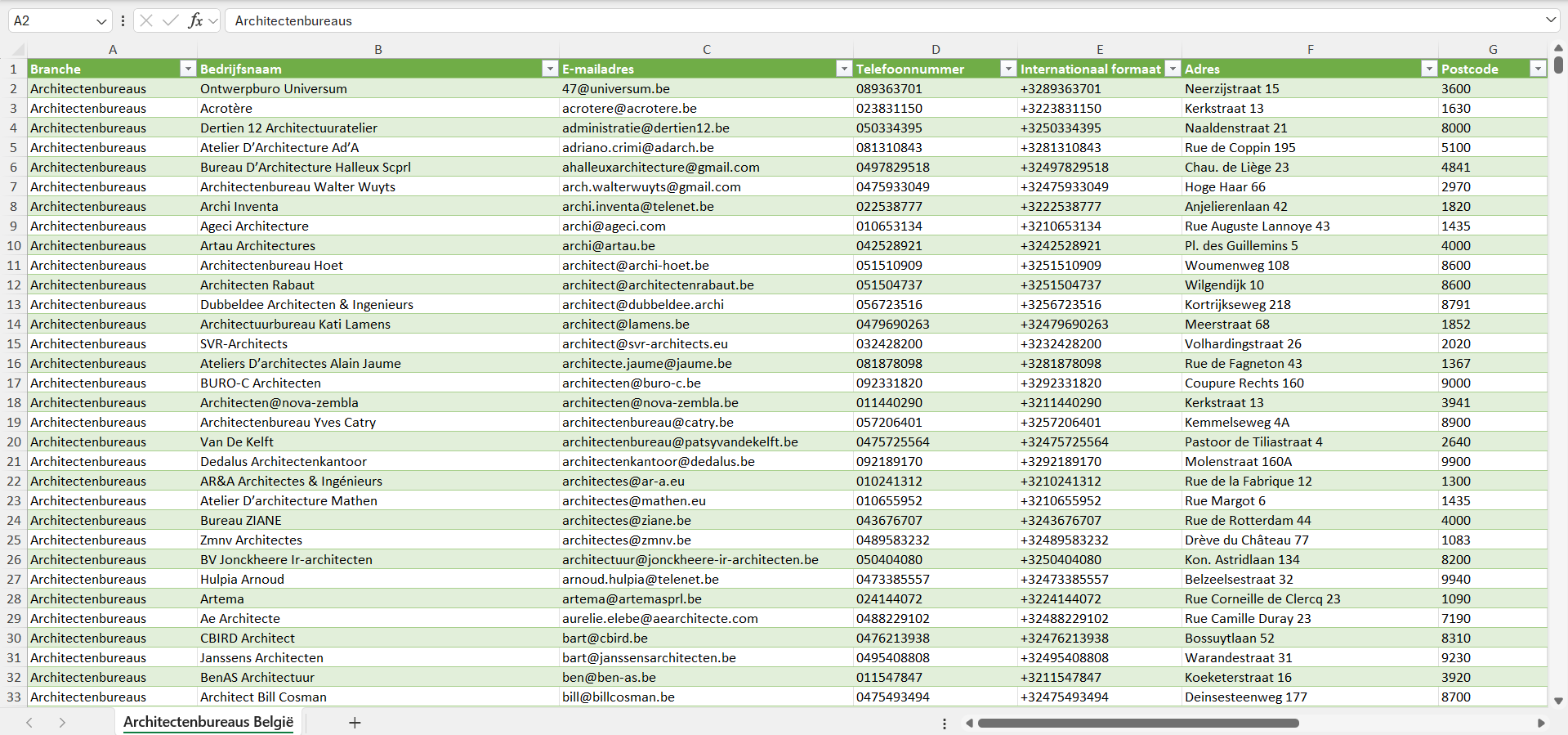 Dataset van alle architectenbureaus in België