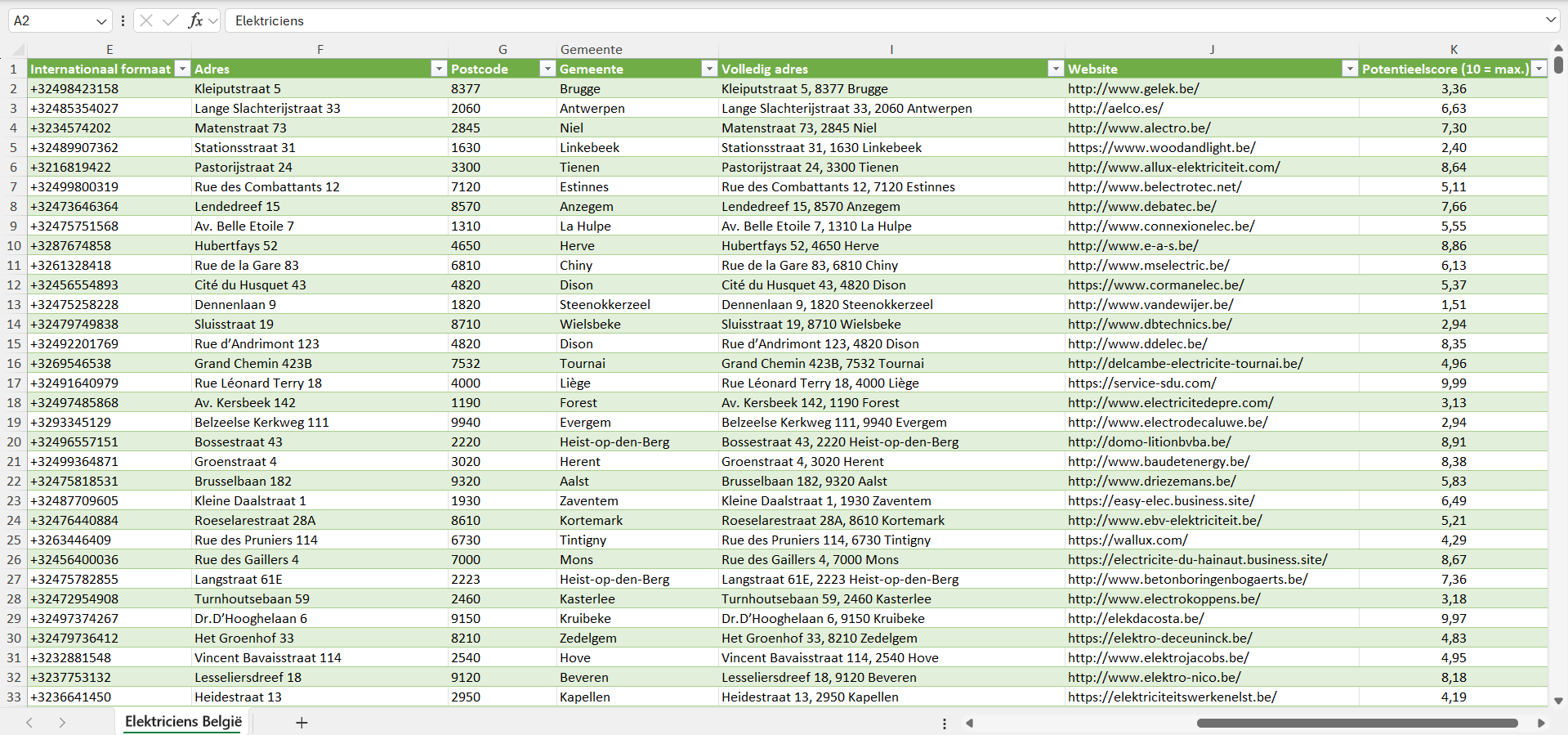 Voor elke elektricien hebben we bovendien een individuele potentieelscore van 1 tot 10 toegekend, gebaseerd op een reeks factoren zoals de geschatte bedrijfsgrootte, het geschatte aantal klanten en de koopkracht van de locatie.