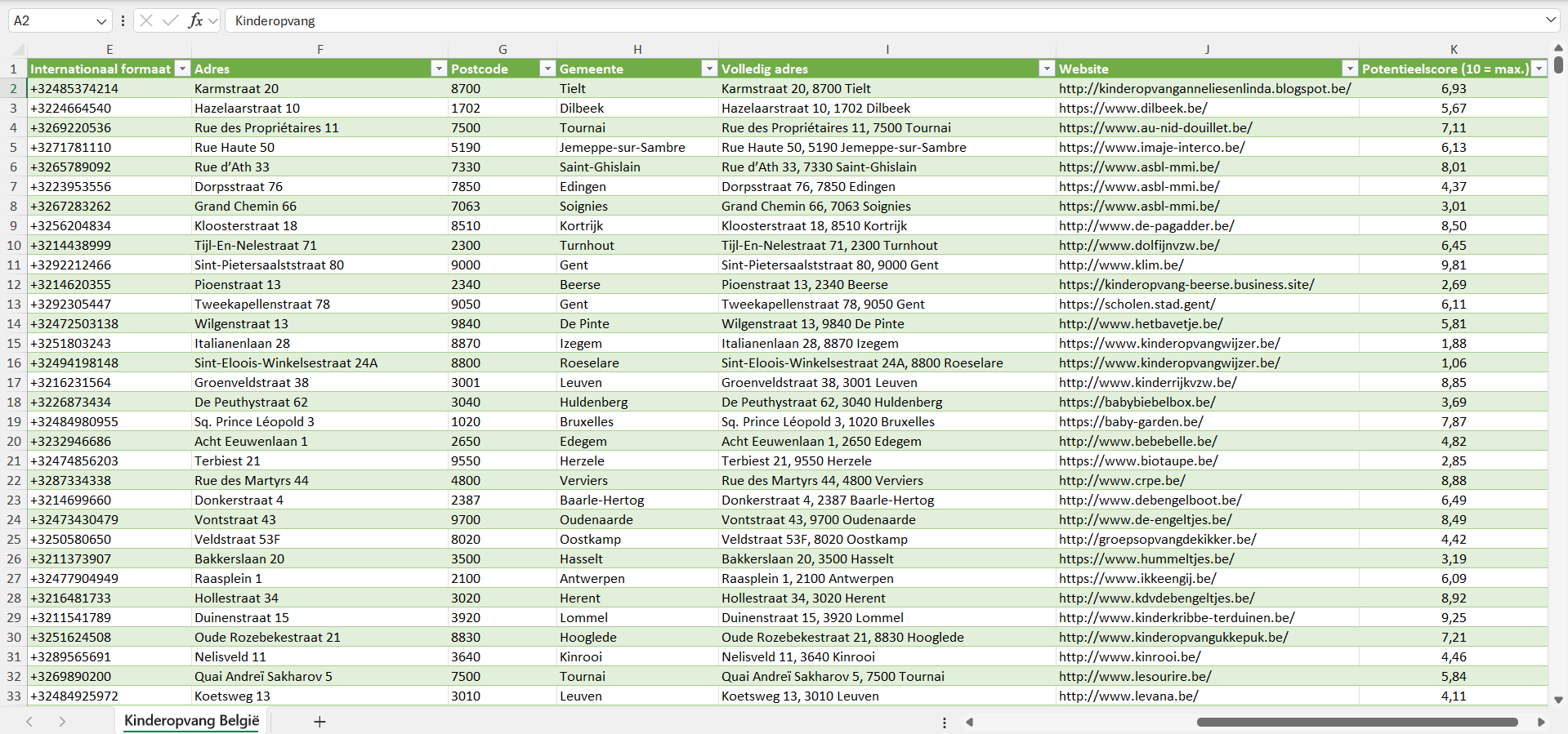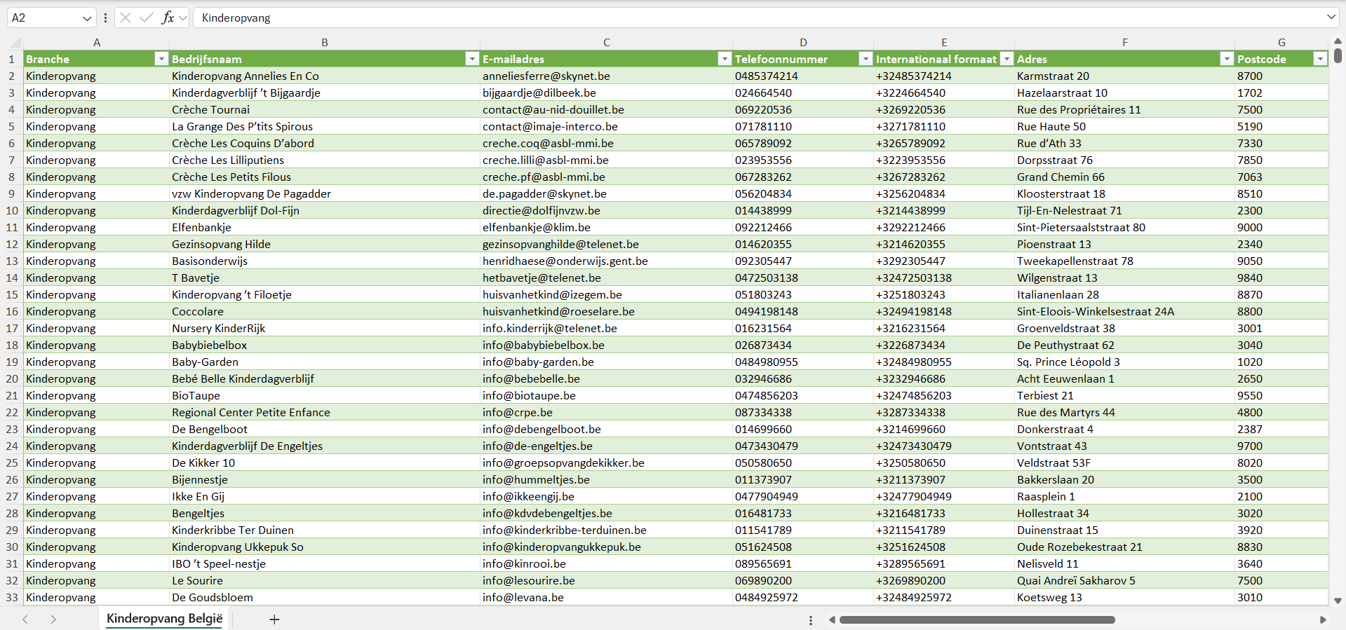 Dataset van alle kinderopvang in België