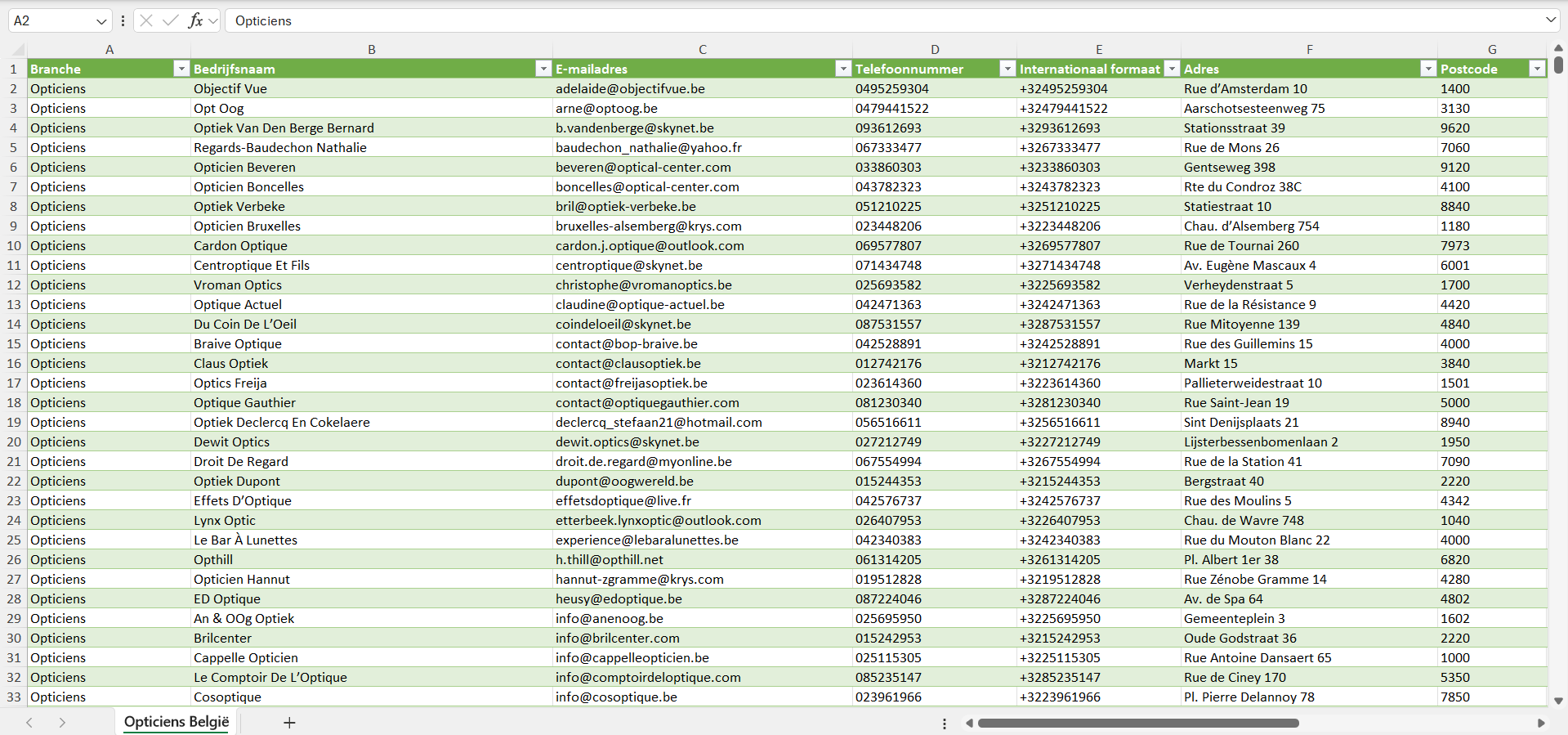 Dataset van alle opticiens in België