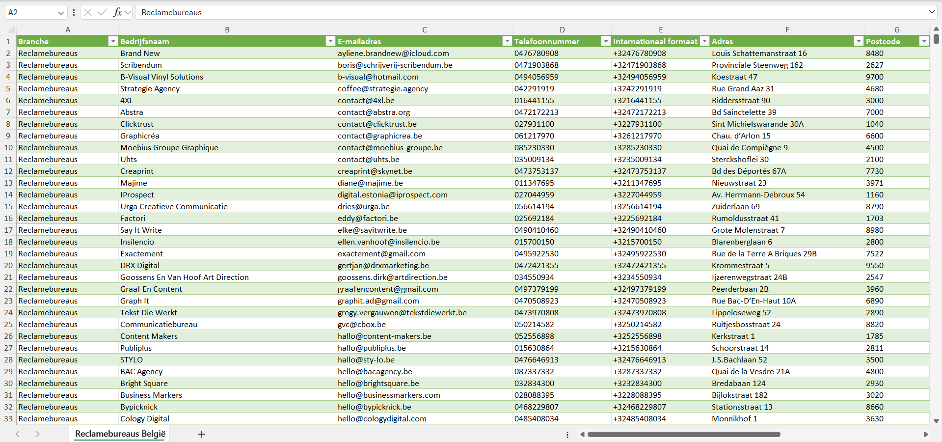 Dataset van alle reclamebureaus in België