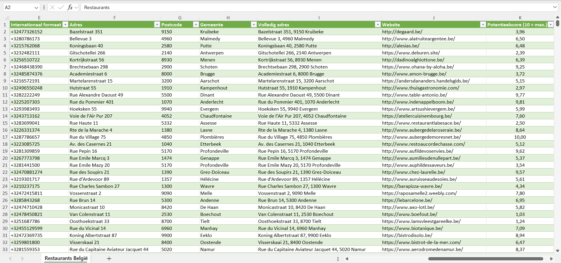 Voor elk restaurant hebben we bovendien een individuele potentieelscore van 1 tot 10 toegekend, gebaseerd op een reeks factoren zoals de geschatte bedrijfsgrootte, het geschatte aantal klanten en de koopkracht van de locatie.