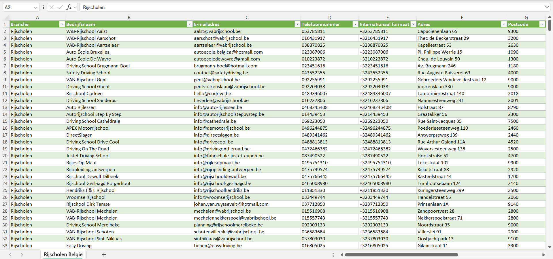 Dataset van alle rijscholen in België
