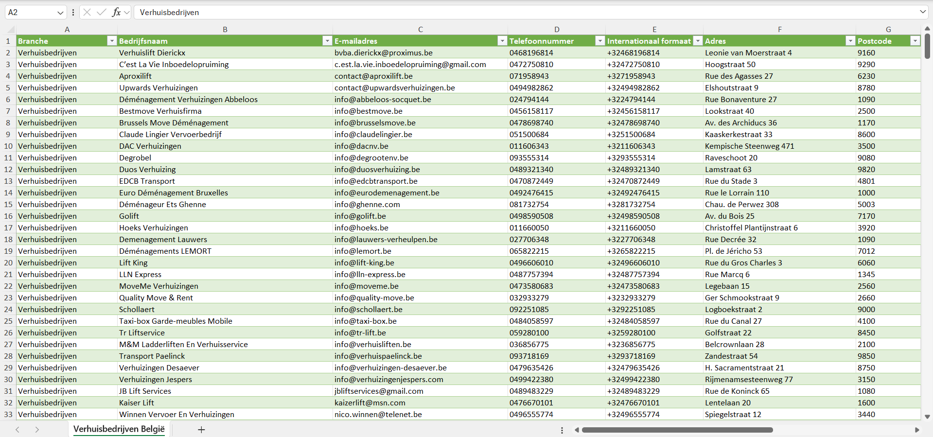 Bedrijvenlijsten.be is opgericht door mensen uit de verkoop die zelf hebben ervaren hoe lastig het is om betrouwbare en uitgebreide zakelijke contactgegevens te vinden voor een eerlijke prijs. Omdat we onze eigen lijsten lange tijd intensief hebben gebruikt, weten we waar het in de praktijk op aankomt. Daarom leveren we een lijst van alle verhuisbedrijven in België die klaar is voor direct gebruik, zodat je je ideale klanten efficiënt kunt bereiken.