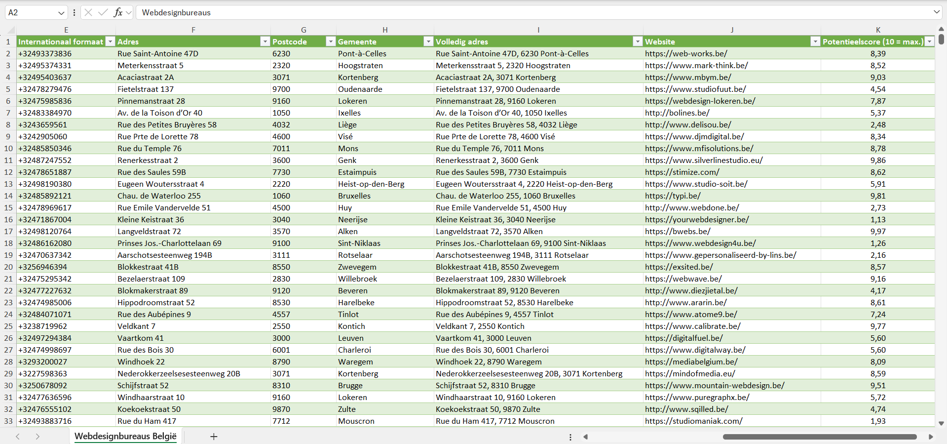 Deze dataset bevat alle webdesignbureaus in België die we hebben kunnen vinden.